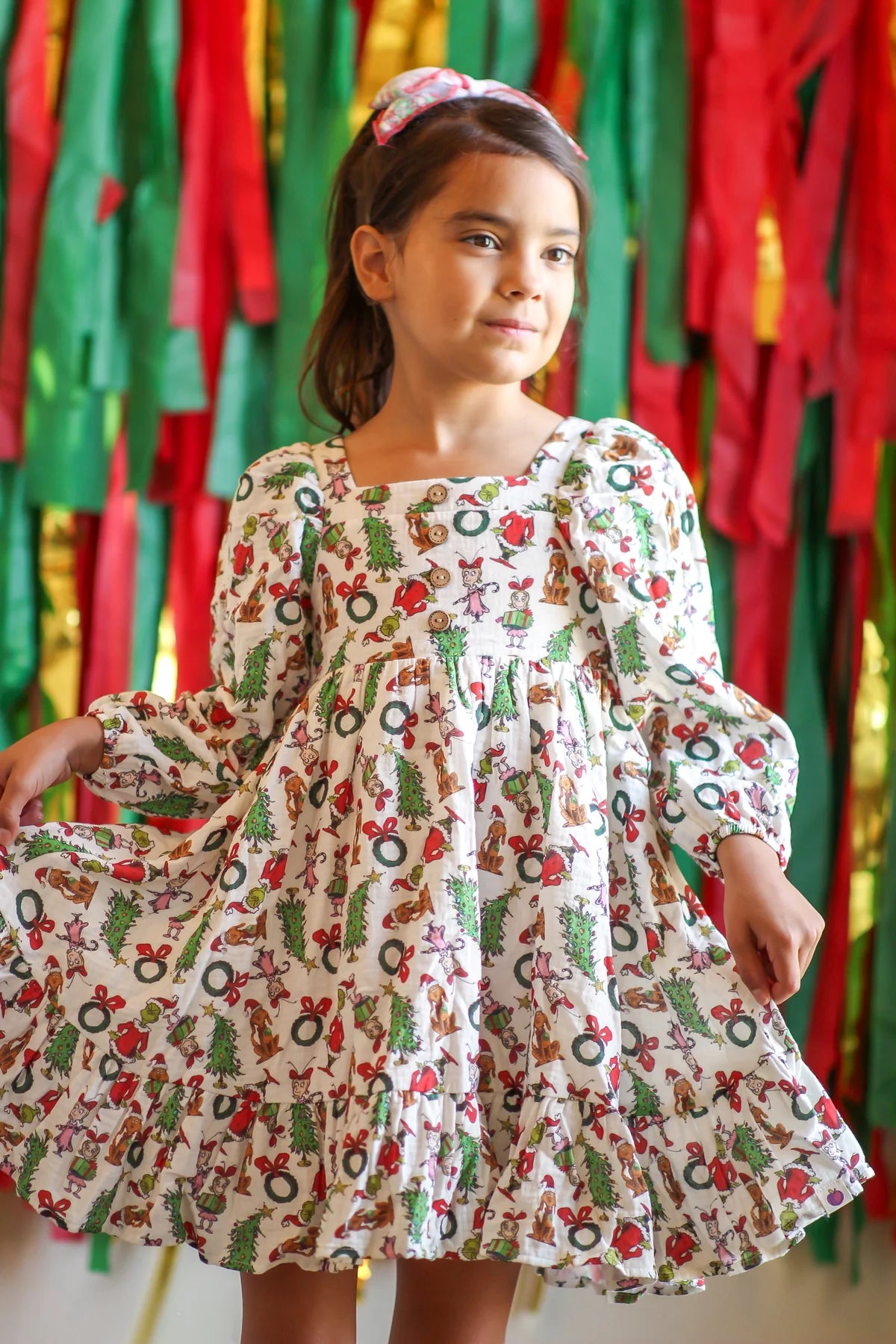 Puff Sleeve Gauze Dress - Peppermint Parade