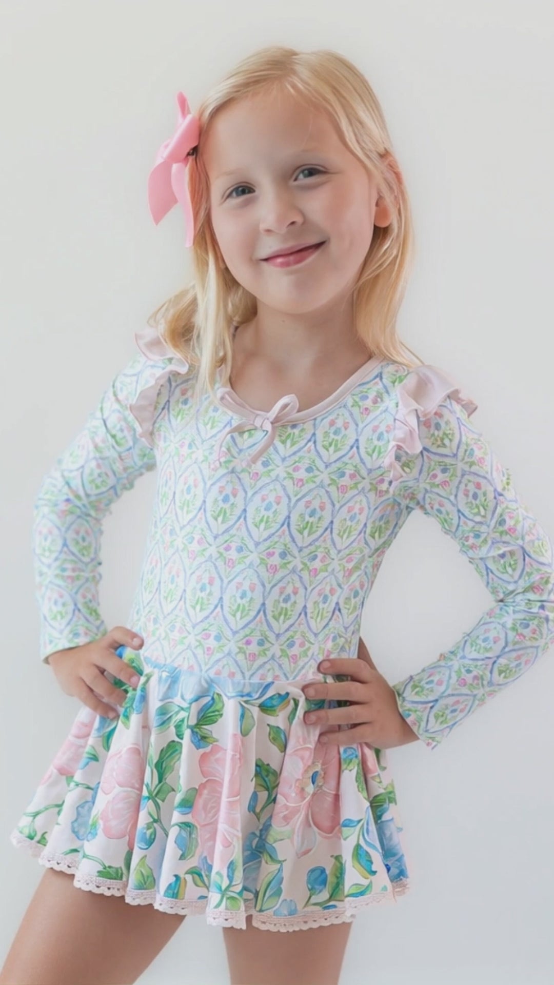 Farrah Tiered Leotard - Blush & Bloom (Long Sleeve)Farrah Tiered Leotard - Blush & Bloom (Long Sleeve)
